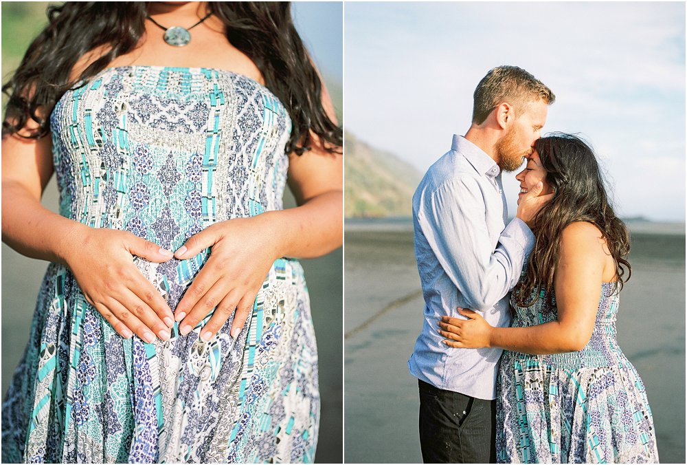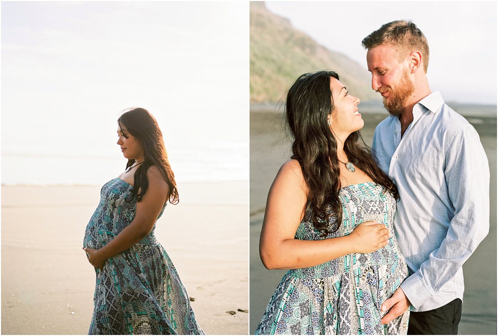 Lots of great things come out of travel. And from a friendship made in Banff in Canada over five years ago between and Brit and a Kiwi, lead to the opportunity to meet again, on the other side of the world and capture this very special time. Josh & Belen, who also met travelling (see, great things!), were gracious enough to put me up for a couple of nights in their beautiful home south of Auckland, New Zealand. During this time, we drove out to a secluded beach just before sunset, to capture their love, their home and the beautiful bump in one of my all time favourite maternity shoots.